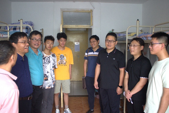 在迎新点,几位院领导了解了报到情况,高度赞扬了工作人员饱满的工作热情和良好的工作状态,对积极投身迎新工作的志愿者表示慰问。随后,几位学院领导走访了学院本科生和研究生的新生宿舍,并与家长们和同学们进行交流。