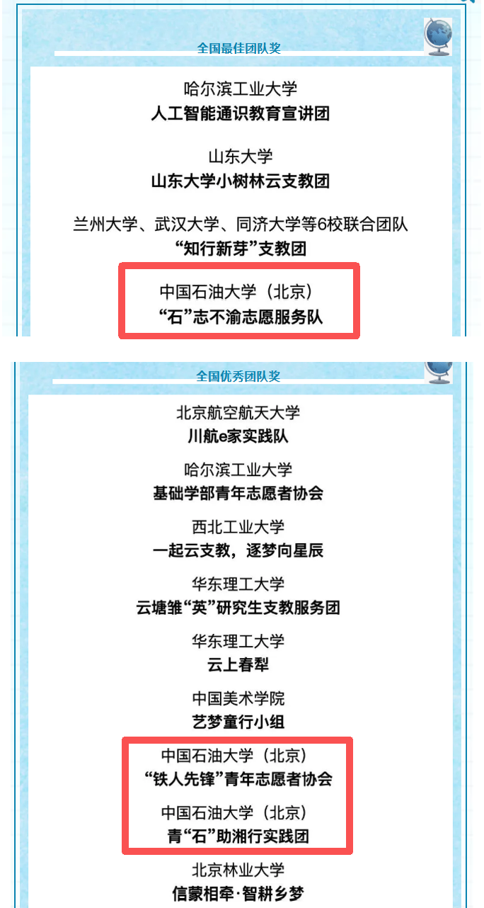 近日,由中国大学生知行促进计划、IBM联合开展的IBM SkillsBuild云支教数字未来乡村教育计划获奖名单公布,学院“石”志不渝志愿服务队获评全国十佳团队,“青”石助湘行实践团、“铁人先锋”青年志愿者协会获评全国优秀团队(全国31支),“青”石助湘行实践团获评全国优秀课程奖(全国10支)。