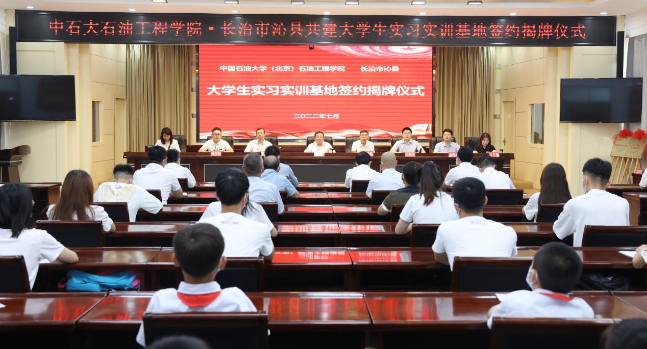 7月23日上午,中石大石油工程学院“七彩假期共育‘未来苗’,环保科普共筑‘双碳梦’”暑期夏令营结营。结营仪式在在山西省长治市沁县政府五楼会议室举行。结营仪式上,石油工程学院分别与沁县教育局、团县委就“省校合作”大学生实习实训基地、共青团共建社会实践基地进行签约并揭牌。