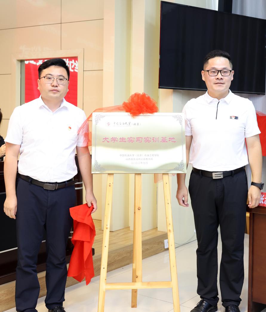 石油工程学院团委书记肖亚楠和沁县团县委书记邱晓刚就共青团共建社会实践基地签约并揭牌。