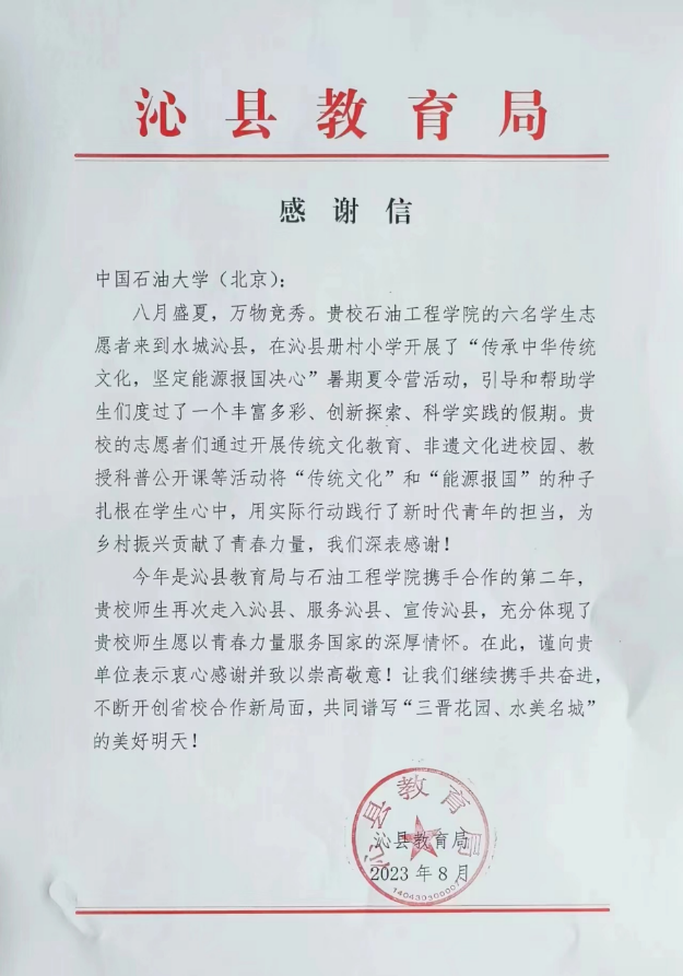 加强资源整合,搭建平台化的训练营。学院积极联络校友和学生家长,形成协同育人效应,促成多支实践团前往大庆油田、辽河油田、长庆油田等地开展校友寻访和实习实践活动。依托学校与长治市签订的校地战略合作协议,组织2支实践团前往长治市开展助力乡村振兴社会实践活动。牵头组建山西省长治市“课程思政讲师团”,通过“云端课堂”进行系列科普。“油你油我”志愿队联合中国石油勘探开发研究院,依托校地共建的社会实践基地,举办第二届“石油科普进校园,点燃少年能源梦”夏令营。依托团中央“笃行计划”“圆梦工程”,积极组织实践团队申报立项,提高青年实践能力。