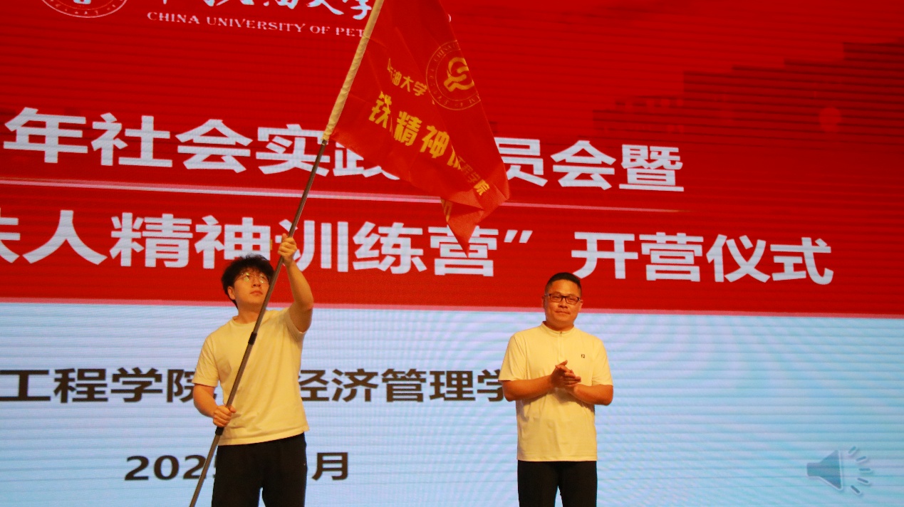 刘东东向营员代表授予“铁人精神训练营”旗帜并指出,实践是青年认识国情、服务社会的重要途径,“铁人精神训练营”已连续举办六期,累计带动两千余名学生“用脚步丈量祖国大地”,希望全体营员在实践中锤炼铁人本领、磨炼铁人意志、淬炼铁人作风,奋力书写为中国式现代化挺膺担当的青春篇章。