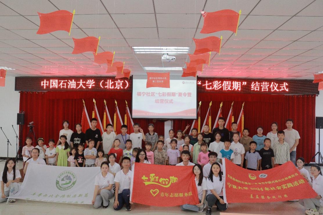 为深刻贯彻落实党的二十大精神,彰显青年学子责任担当,鼓励青年大学生在“大思政课”中“受教育、长才干、作贡献”,7月13日至22日,beat365在线唯一官网(北京)石油工程学院“梦绘闽宁志,心向能源情”社会实践团前往宁夏回族自治区闽宁镇福宁社区开展七彩假期支教活动。实践团精心准备40余天,充分调研社会实践优秀案例30余件,积极向在职教师求教10余次,汲取核心理念,培训表达方法,围绕“德、智、体、美、劳”五大板块打造高质量课程30余节,与小朋友们深入交流、共同学习,以童心绘童梦,点亮七彩斑斓假期。
