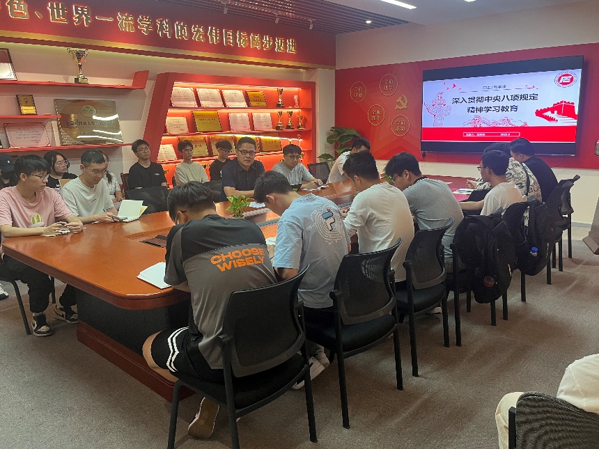 刘东东以学生纵向党支部规范化及品牌化建设为切入口,融合深入贯彻中央八项规定精神学习教育的核心要义,并通过典型高校学生违纪警示案例,警示学生党员引以为戒,自觉抵制不正之风。他强调,学生党支部作为高校学生群体意识形态的重要阵地,应持续打造纪律教育长效机制,为培养政治过硬、作风清正的时代新人夯实基层组织根基。