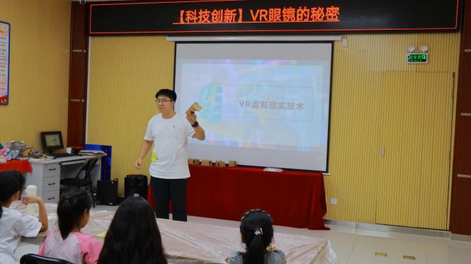 在怡园社区支教活动中,实践团围绕思想启蒙、文化传承、文明生活、科技创新与艺术涵养等多个维度,精心策划了为期五天的支教活动以帮助孩子们在假期里茁壮成长。在庄严肃穆的升旗仪式上,孩子们认真地注视着五星红旗冉冉升起,随后在实践课堂中,他们亲手组装起升旗台模型,表达着对伟大祖国深深的祝福和崇高的敬意。在美术课上,孩子们将无尽的想象倾注于蓝色彩笔之下,努力勾勒青花瓷的精美图案;在书法课堂中,他们以少年风姿,书写翰墨飘香;在文明生活课堂,孩子们学习了碳中和流程与垃圾分类知识,而后他们的积极发言表达了对低碳生活方式的喜爱与向往;在科普课堂上,孩子们戴上神奇的VR眼镜,探索未知世界,用科技搭建梦想的桥梁。实践团循循善诱的教学方式让孩子们在寓教于乐中收获成长,同时也得到了家长和社区工作人员的一致好评。