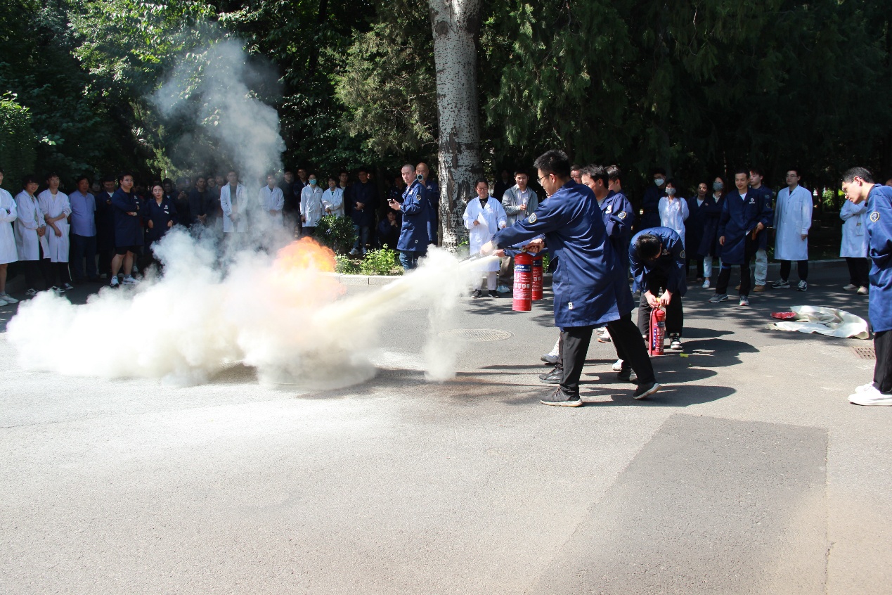 疏散结束后,灭真火实操演练随即展开。在保卫处老师的耐心指导下,师生们纷纷上阵,成功扑灭真实火源,切实掌握了灭火器的正确使用技能。