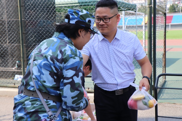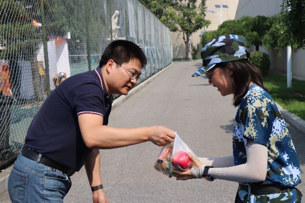 随后,学院领导为同学们分发慰问水果。