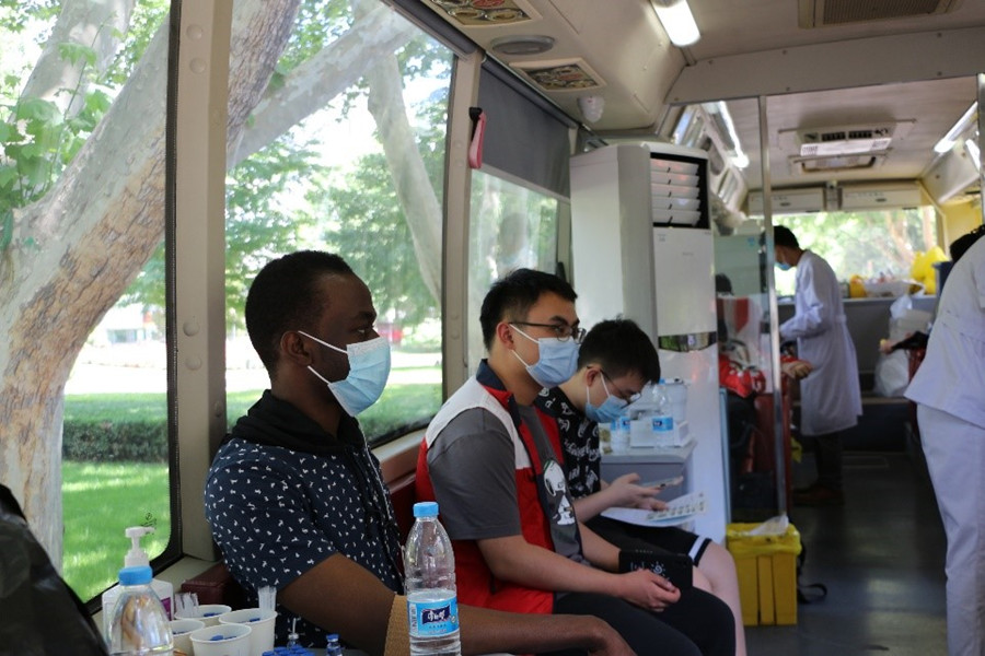 Des étudiants internationaux de l’Université chinoise du pétrole (Pékin) participent à l’activité de don de sang «Don du sang sur le campus»