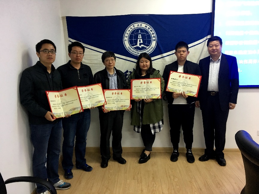 4月12日下午,地质学系“地质学论坛”最佳学术报告颁奖典礼在地质楼206会议室举行。地球科学学院副院长岳大力老师,地球科学学院陈书平老师、鲜本忠老师,获得荣誉的主讲人以及学生代表们出席了颁奖典礼。