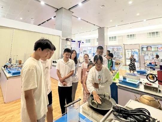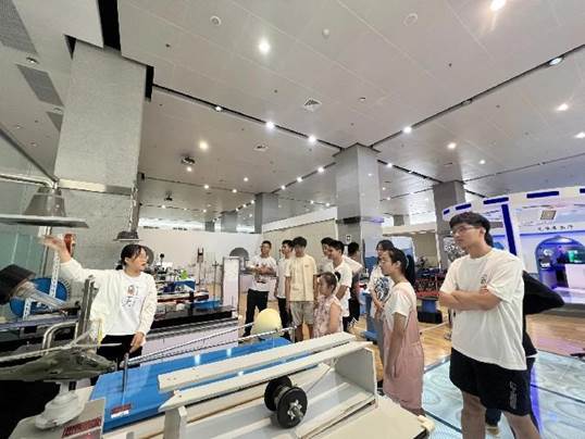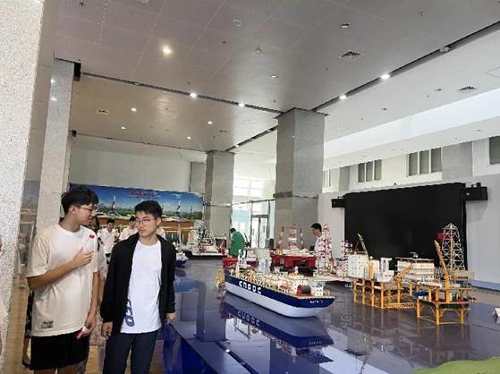 在中油大厦的石油之光科技展览馆,学生们逐一参观了“物之理”、“机械”、“物探”、“测井”以及“海洋工程”五个展示单元。展览馆的志愿者讲解了重心、共振、伯努利原理、光电转换效应和表面张力等科学原理,通过实际展示和通俗易懂的解释,揭示了这些原理在生活中和科学研究中的重要应用。