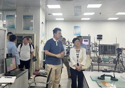 油气成藏物理模拟实验室乔俊程老师负责讲解。底院士就油气成藏技术和实验设备运行情况与乔老师进行了交流。