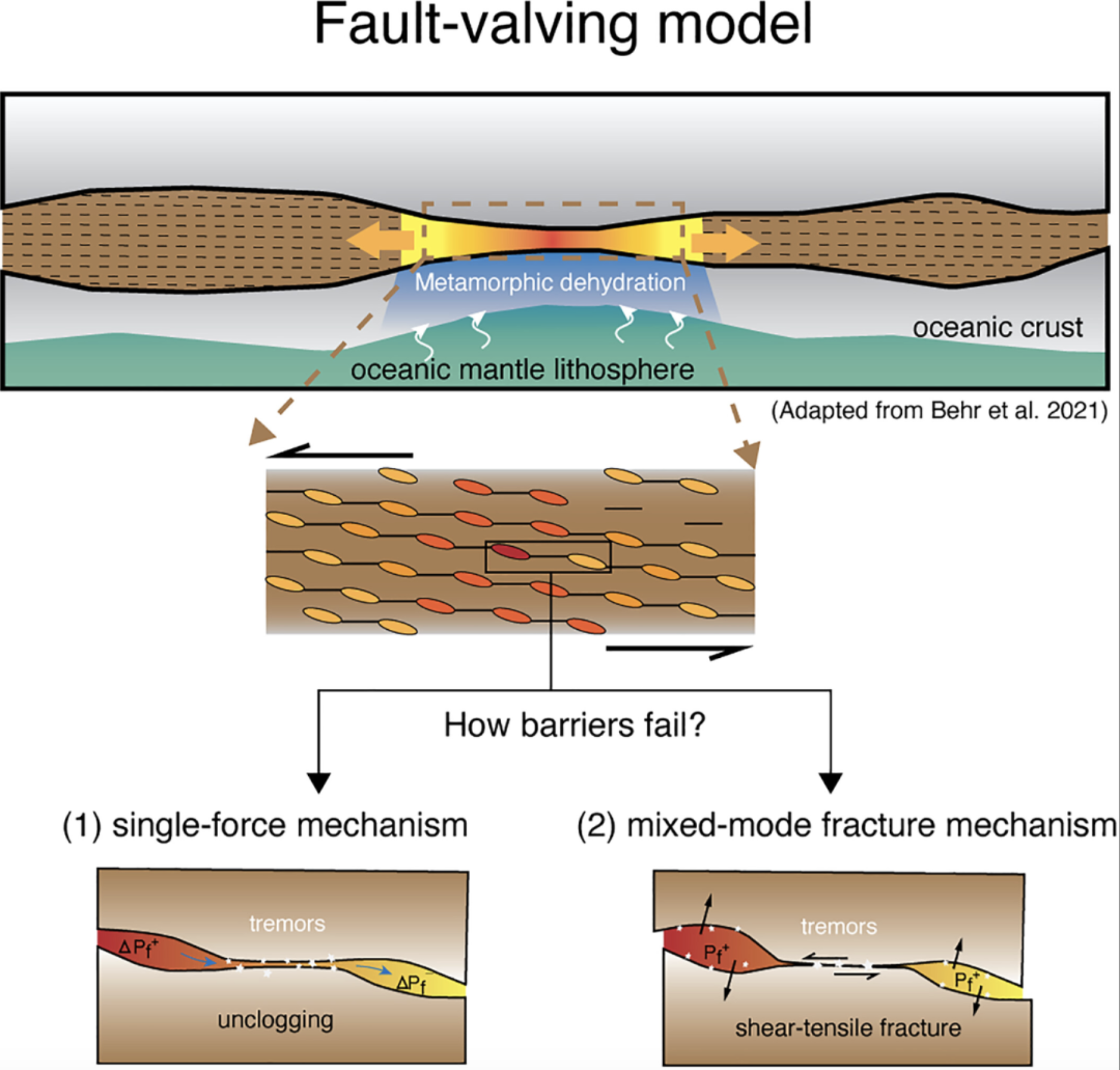 使用相同的实验设置和流程,团队把注意力转向天然地震——毕竟,地震是由构造板块中的断裂引起的。团队具体研究了慢滑和构造震动,也称为慢地震。团队成员、哈佛地球与行星科学系博士生、AGU Advances论文的第一作者袁聪聪说:“慢地震非常重要,因为它们可能会引发大地震,尽管与常规地震相比,它们移动得很慢。以前的研究观察到,流体可以在调节慢滑及构造震动事件方面发挥作用,但是水力裂缝如何调节流体流动并与剪切裂缝相互作用尚未被理解。”