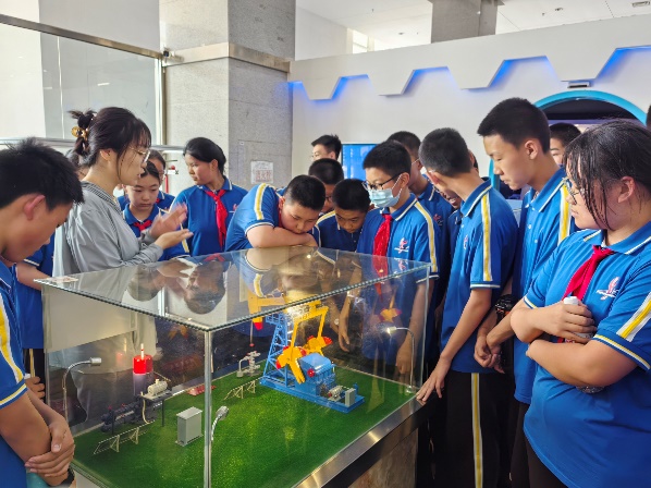 在沉积动力过程模拟实验室,学生们参观了我国首个现代化沉积地质模拟实验室。通过观察水槽中沉积物的搬运堆积过程,配合三维激光扫描仪、超声流速剖面测量仪等高精度设备的演示,学生们对地质作用有了更直观的认识。