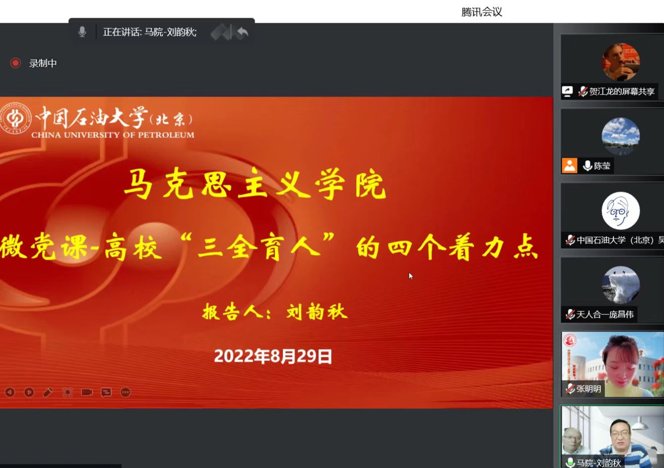 8月29日上午,马克思主义学院院长、书记线上讲授微党课。