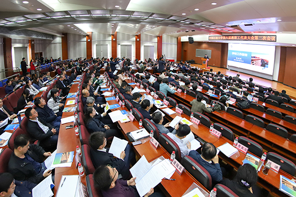 大会听取了校长张来斌作的学校工作报告。张来斌在工作报告中回顾了2018年学校事业发展成就。他说,学校以习近平新时代中国特色社会主义思想为指导,牢牢把握社会主义办学方向,全面贯彻落实党的教育方针,认真落实教育部巡视整改意见,以“双一流”建设为引领,以深化综合改革为动力,“严”字当头、“优”字着力、“兴”字为要、“法”字打底,全面从严治党成效显著,学科布局结构持续优化,聚人心集众力成绩斐然,现代大学制度建设卓有成效,学校的人才培养质量进一步提升,一流学科建设扎实推进,师资建设持续加强,科技创新能力进一步增强,国际交流合作持续推进,学校办学条件不断改善,克拉玛依校区建设稳步推进,各项事业迈上了新台阶。