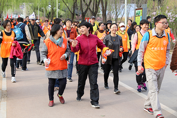 4月11日下午,beat365在线唯一官网在昌平区滨河公园举办“迎国庆、健步行”暨第八届“走向健康”教职工春季长走活动。石大副校长吴小林以及1000余名教职工参加了活动。