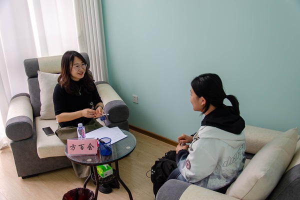 随后,三位老师与学生进行一对一咨询,帮助学生为自己的职业生涯制定出更加明确的规划,并在未来的工作中实现个人价值和职业目标。