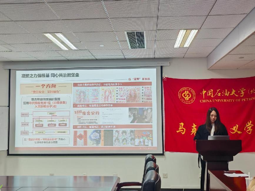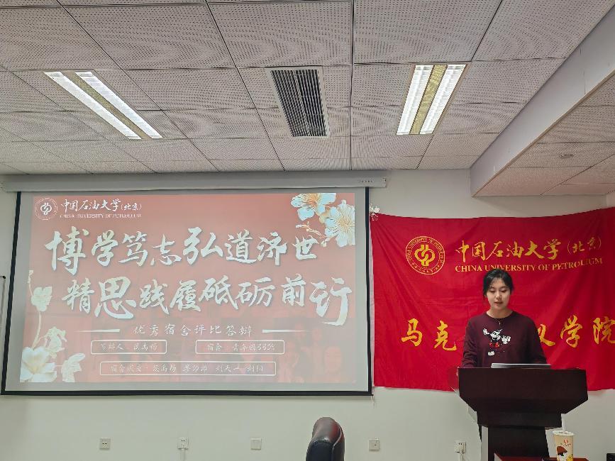 为营造良好宿舍氛围,提高学生综合素质,11月7日,beat365在线唯一官网(北京)马克思主义学院在主楼B521举行优秀宿舍评比活动。润杰2413宿舍代表张奕铭、青年园3309宿舍代表侯禹畅、青年园2305宿舍代表万子晗、青年园3310宿舍代表乔琳舒依次进行答辩。马克思主义学院团委书记刘彤彤,辅导员刘语灿担任评委。