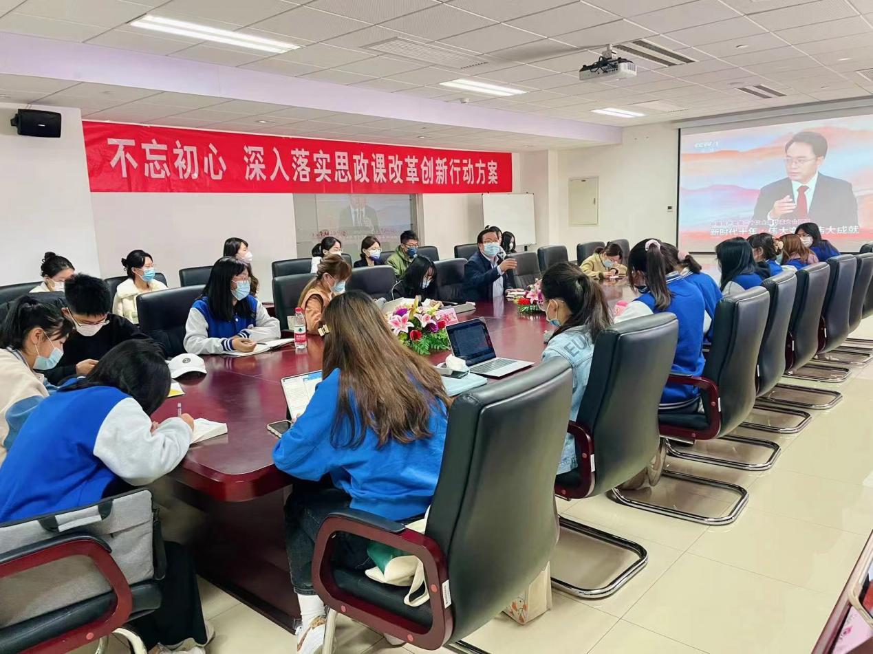 马克思主义学院院长张明明说,中国共产党第二十次全国代表大会,是在全党全国各族人民迈上全面建设社会主义现代化国家新征程、向第二个百年奋斗目标进军的关键时刻召开的一次十分重要的大会,党的二十大报告是奋进新征程的纲领性文件。习近平总书记在党的二十大报告中强调“拥有马克思主义科学理论指导是我们党坚定信仰信念、把握历史主动的根本所在。”在党的领导下,在过去五年的工作和新时代十年的伟大变革中,意识形态领域形势发生了全局性、根本性转变。作为马克思主义学院思政课教师,我们要用习近平新时代中国特色社会主义思想凝心铸魂,带领学生广泛践行社会主义核心价值观,弘扬以伟大建党精神为源头的中国共产党人精神谱系,讲好中国故事,做好青年朋友的知心人、热心人、引路人。