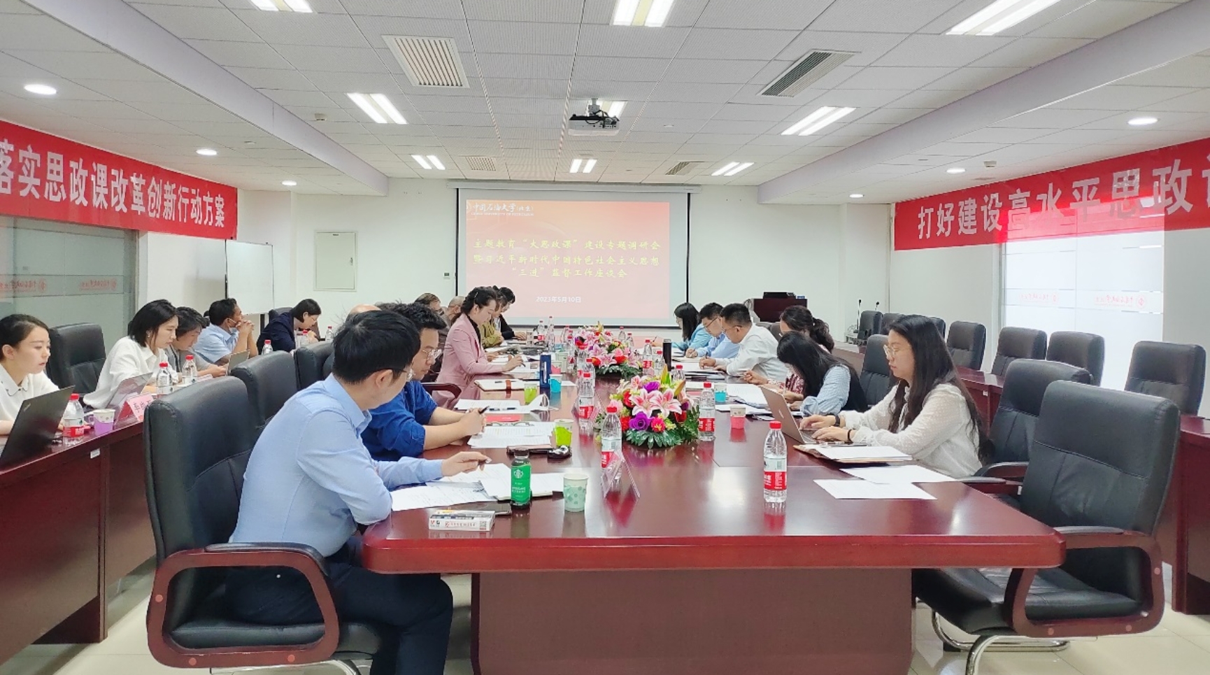 文永红在讲话中肯定了学院整体精神面貌和过去一年所取得的成绩,并重点围绕“大思政课”体系化构进行了讲话。他指出,“大思政课”体系化构建,一要遵循系统观念、以满足学生能力素养需求为出发点进行顶层设计;二要充分依托并利用现有平台优势,将思政课实践环节融入大学生社会实践体系,重点做好整体设计和环节衔接;三要在学校课程体系中融入能源行业特色,做好思政课程之间、思政课程与课程思政之间教学内容的统筹,着重从操作可行性、授课效果和授课对象覆盖度等方面考量融入方式。同时,文永红针对教学与学术关系、兼职思政课教师资源拓展、思政教学案例库建设等方面,与参会教师进行了交流探讨。