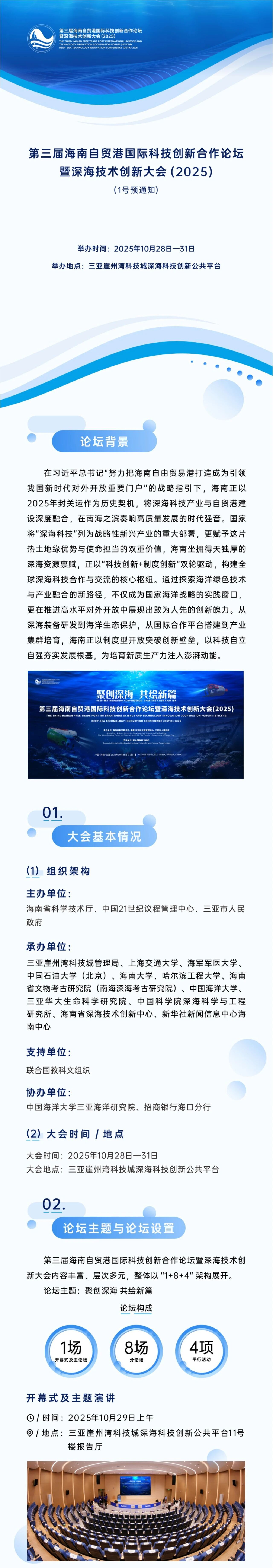 【一号预通知】第三届海南自贸港国际科技创新合作论坛暨深海技术创新大会(2025)
