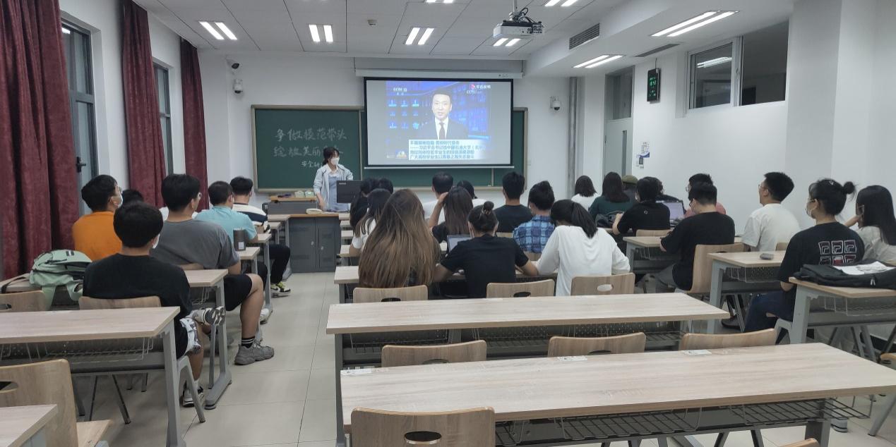 各团支部对照《新时代共青团先进性评价指导大纲(试行)》标准,结合三季度主题教育实践安排围绕身边人、身边事,展开学习交流。本安全20-1团支部邀请石工20-1团支部书记刘晓旗分享团支部在学习和工作中所展现的先锋模范成果,并一同回顾习近平总书记给我校克拉玛依校区毕业生的回信精神本海工21-3团支部通过学习社会实践先进个人、优秀志愿者等优秀学生的事迹,进一步担负起时代使命,争做“五个模范、五个带头”的新时代共青团员。