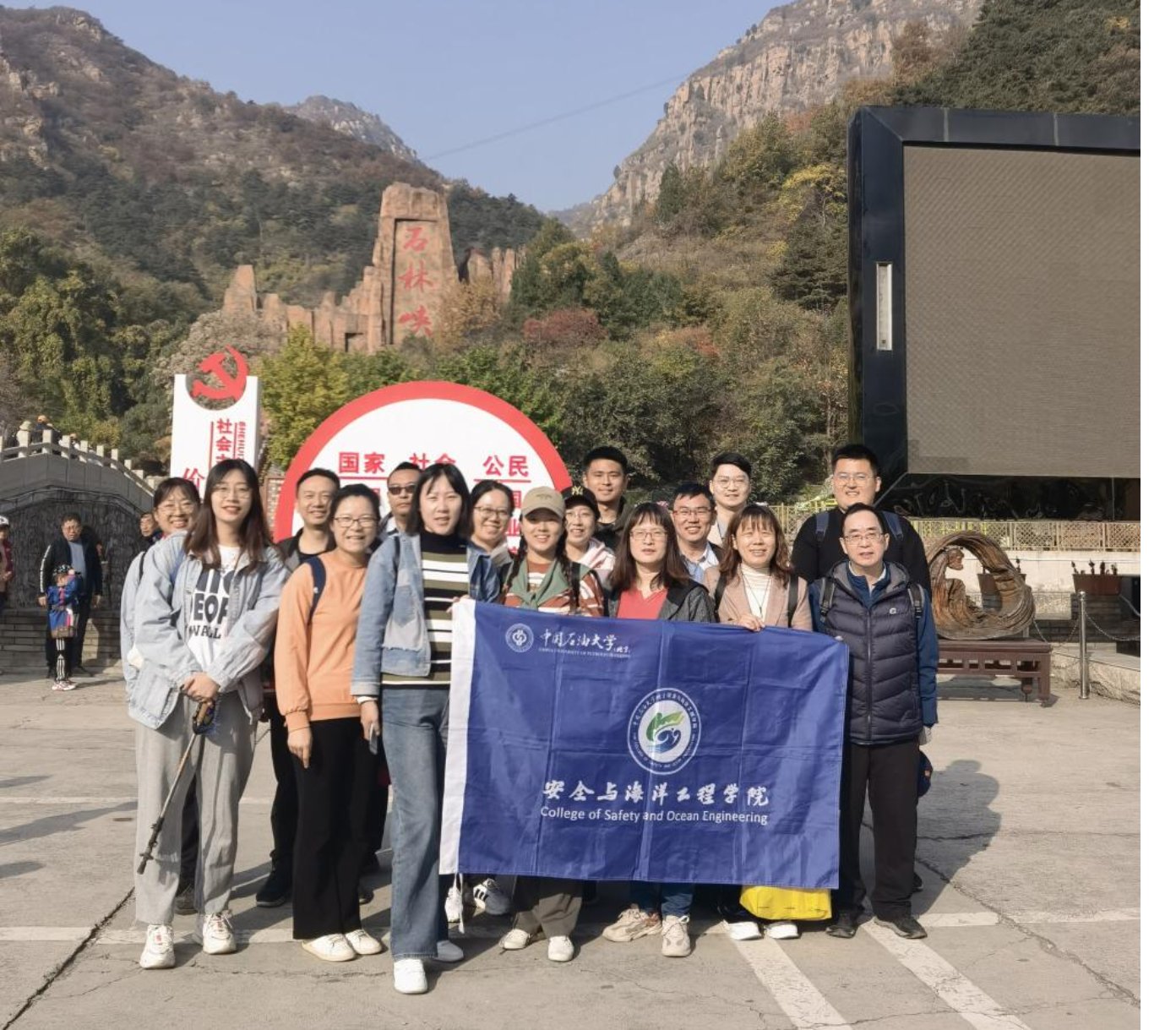 秋光绚丽,金风送爽,10月28日,安全与海洋工程学院组织教职工前往平谷石林峡开展秋游活动。在党委副书记、工会主席赵凯的组织带领下,学院教师积极报名,踊跃参加。