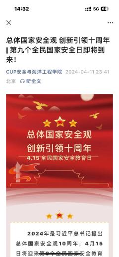 为进一步加强师生树牢总体国家安全观,不断增强全民国家安全意识和素养,提高师生履行国家安全法律责任义务的自觉性和主动性,筑牢国家安全的心理防线和思想防线,为维护国家利益、保证国家长治久安、安全发展,4月10日至15日,中石大安全与海洋工程学院组织开展2024年国家安全教育系列宣传教育活动。