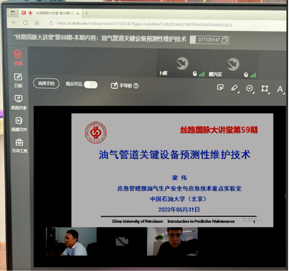 5月31日下午,第59期“丝路国脉大讲堂”邀请beat365在线唯一官网(北京)教授、应急管理部油气生产安全与应急技术重点实验室副主任梁伟讲授油气管道关键设备预测性维护技术。
