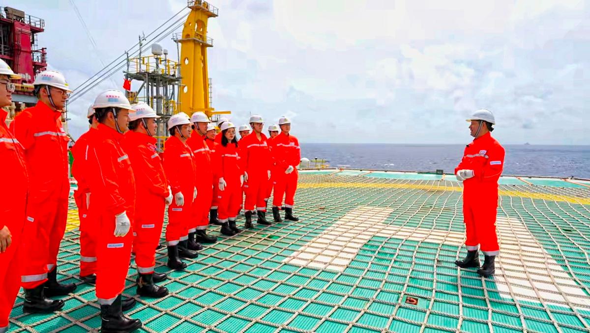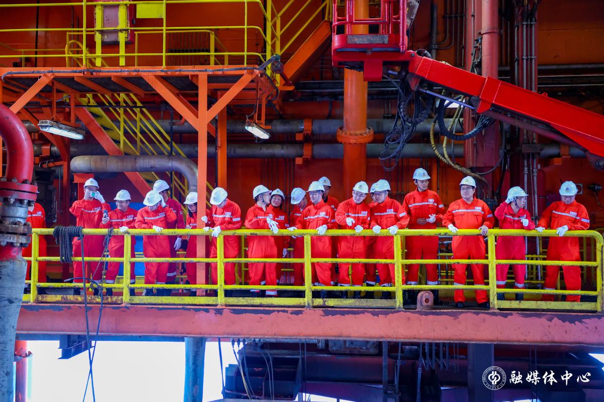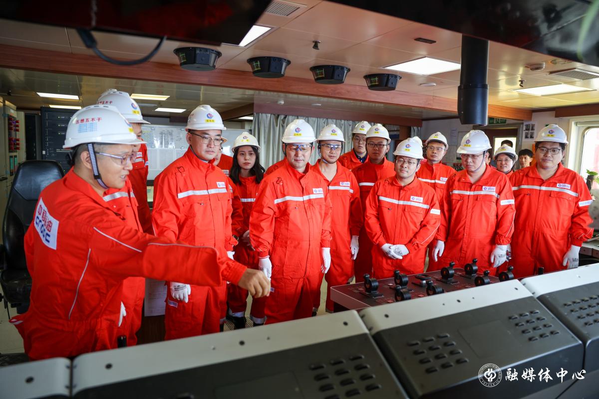 师生党员前往平台中控室、钻台甲板、月池、餐厅、宿舍等现场亲身体验海洋油气钻完井作业过程和生活设施。
