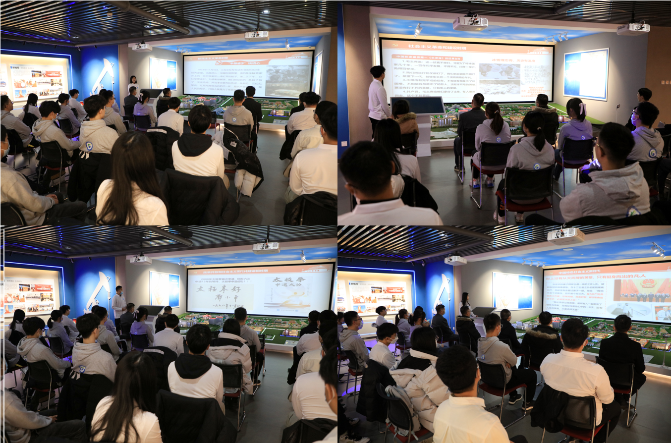 本安全第一党支部书记马明雨带领师生党员参观校史馆,重温学校六十八年的发展历程,重温了一代代中石大人在不同历史时期的使命与担当,学校在不同历史发展时期在人才培养和教学科研等方面的成功经验和杰出成就,边走边学,让学生党员重温学校与祖国海洋石油工业发展史同呼吸、与中国共产党砥砺奋进的峥嵘岁月共命运的波澜历史。同学们驻足在一张28年前的老照片前,这张照片里高德利、徐春明、张来斌三位中石大自己培养的“土生土长”的院士同框出现,“在这别具一格的“教室”里学习党史校史,传承前辈们的内在精神,让我们受益一生”,安全工程2020级本科生张馨予表示。