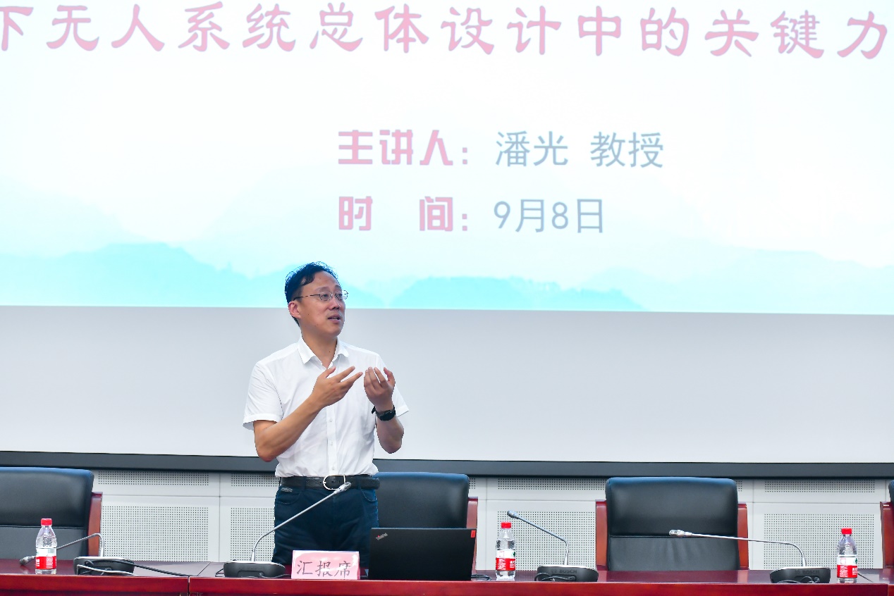 报告结束后,潘光与在场师生就目前无人潜航系统作战特点、仿蝠鲼柔体潜水器的流体动力学、电池自持时间等问题进行互动交流,报告会现场气氛热烈。