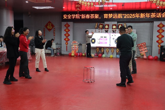 海工、安全两个系、新入职教师、学院办公室和学生办公室精心准备了歌曲、舞蹈、小品、相声、古筝演奏等丰富多彩的节目,并组织大家进行小游戏和抽奖环节,为茶话会增添了欢声笑语。老师们多才多艺的表演引得全场喝彩,掌声雷动。