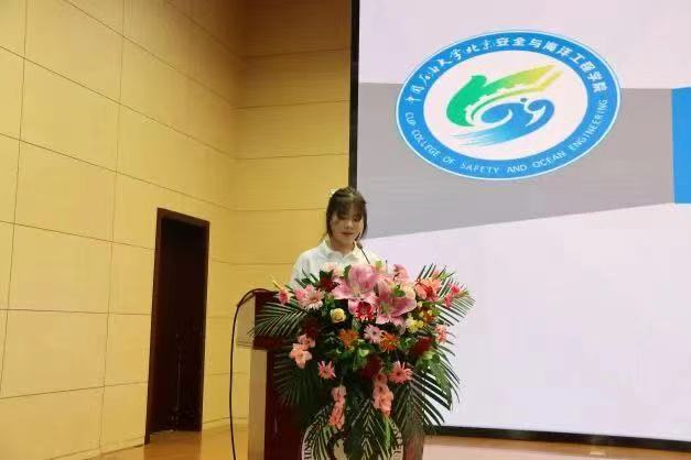 海洋油气工程2022级本科新生郭嘉懿作为新生代表在发言中首先分享了来到石油大学后的喜悦,列举了师兄师姐们的诸多成就,她倍感自豪,也对自己的本科生活充满信心。
