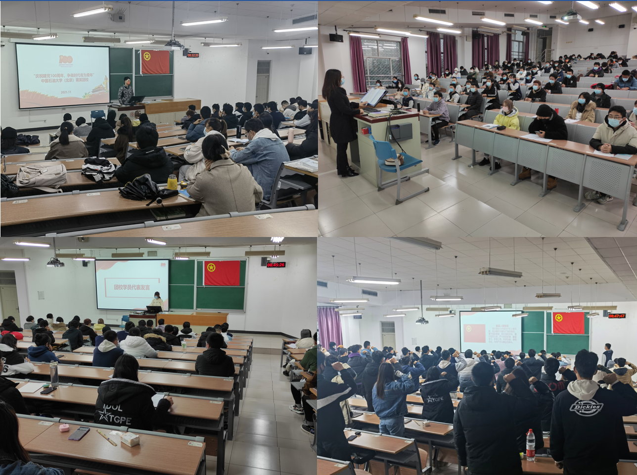 在上团课以前,同学们利用网络资源积极开展线上自学,包含重温五四精神、团史团章解读等内容,重点学习了习近平总书记在庆祝中国共产党成立100周年大会上的重要讲话。学习过后,同学们纷纷表示,一定牢记习近平总书记的嘱托,勤奋学习、刻苦磨练,在实现中国梦的伟大实践中创造自己的精彩人生。