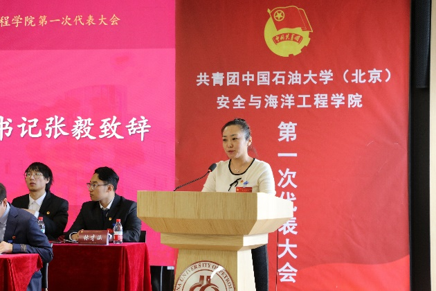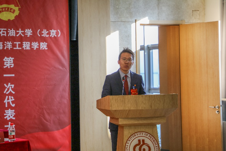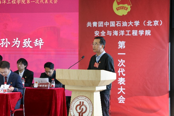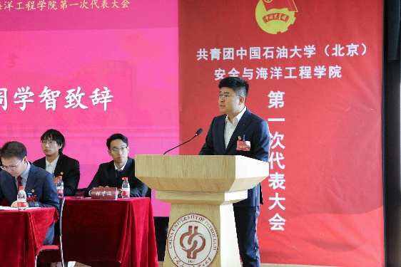 周学智代表学校团委向大会召开表示热烈祝贺!他充分肯定了学院自建立以来,学院团委所取得的一系列成绩,其中包括代表学校首次捧得全国大学生暑期社会实践成果TOP10,首次获评北京市十佳主题团日活动,在第十四届挑战杯全国创业计划竞赛“一带一路”专项赛中摘得学校唯一国赛铜奖等。他深情寄语广大青年,要坚定信念、志存高远,把个人价值追求融入民族进步之中;要勤奋学习、躬行实践,打牢进步根基,更好地担负起重担重任;要务实奋进、创新创业,用行动回答“教育强国,中石大何为”;要砥砺品德、升华境界,积极弘扬中石大精神。