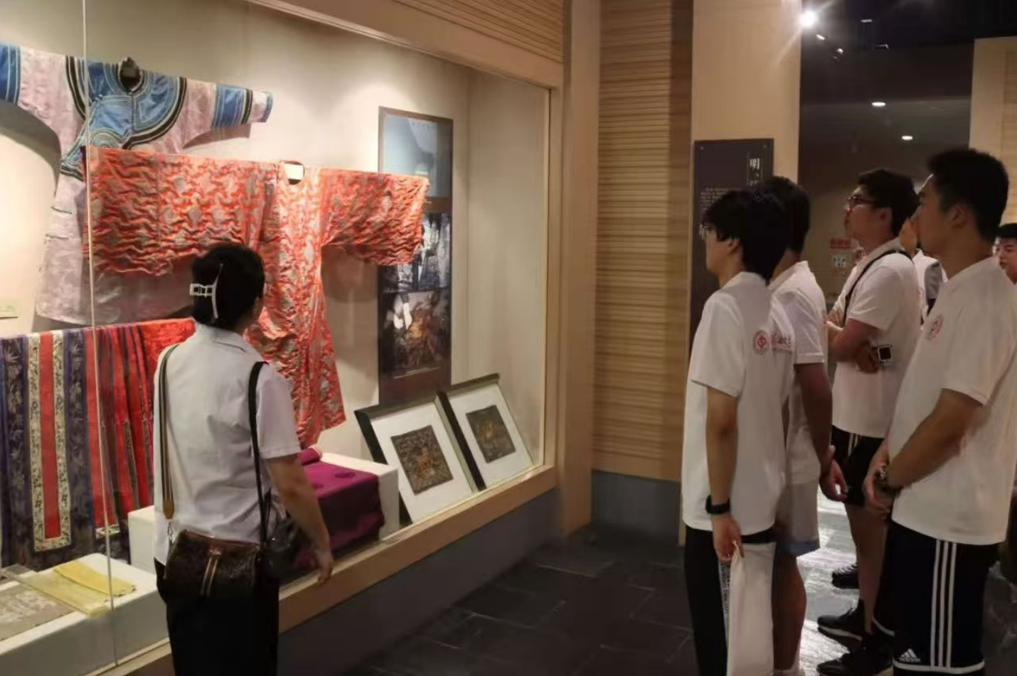 实践团来到浙江嘉欣丝绸股份有限公司,参观其博物馆,与公司负责人进行座谈交流。作为丝绸行业的龙头企业,嘉欣丝绸带动万户蚕农走上“蚕桑致富路”,通过“欣火计划”等人才培养机制引领青年发扬千年丝绸文化。