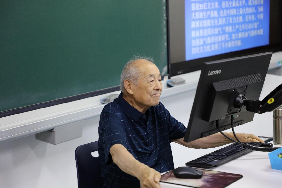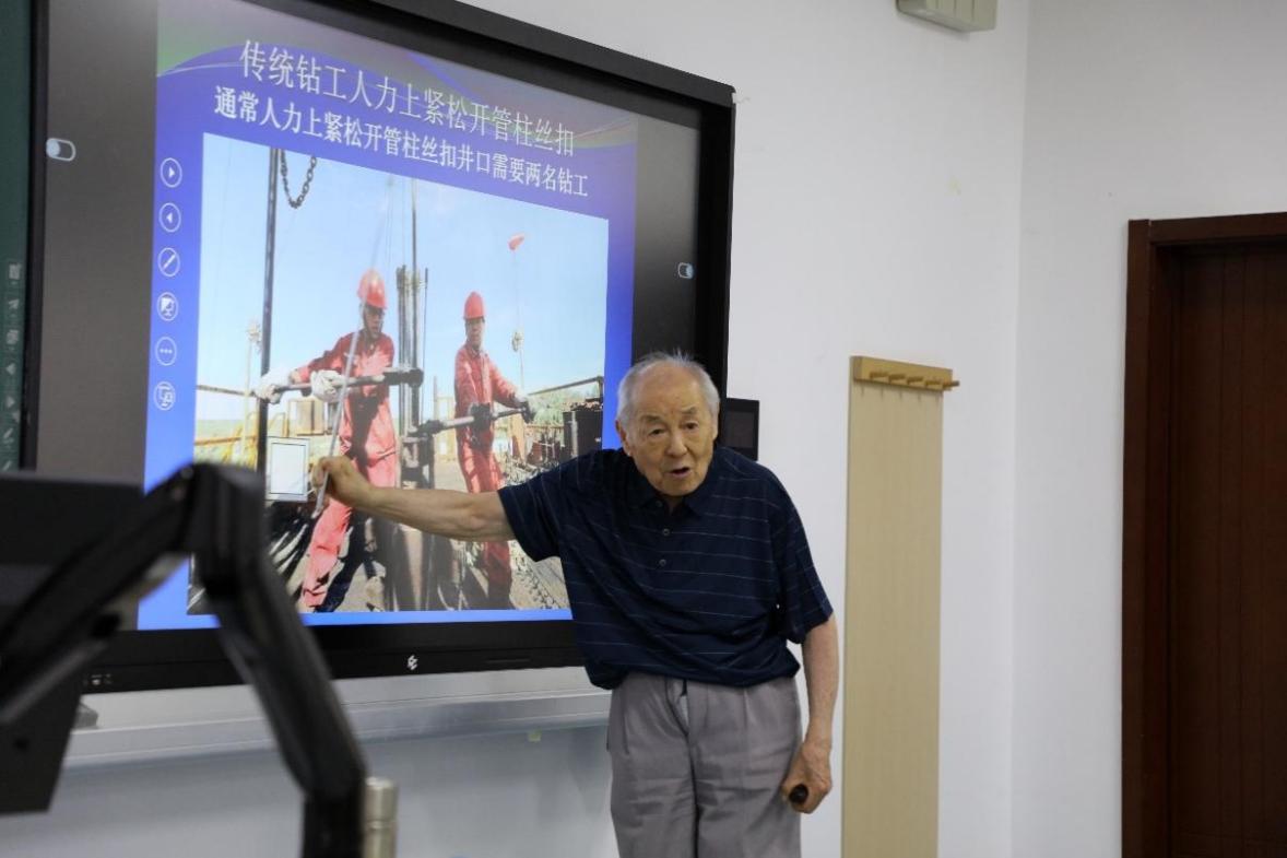 在这次报告上,方华灿教授以丰富的理论知识和实践经验,深入浅出地阐述了我国渤海气田勘探、采集技术的重大突破,介绍了渤海气田分布广、储量大的现状。他带领师生了解了海上钻井平台的新技术与新发展,提出了“使用离岸能源供给绿电”“保护资源循环注气”等海上钻井平台高质量发展的需要;提出了自动化智能钻机在油气田开发的广阔前景,对比了传统人力钻工与先进“铁钻工”自动完成井口钻工的差距;介绍了渤海水浅、平均深度低的现实难题,一针见血地指出了钢圆筒沉箱、水下控制系统、浅水泥面下采油树系统等关键技术发展的重要意义。