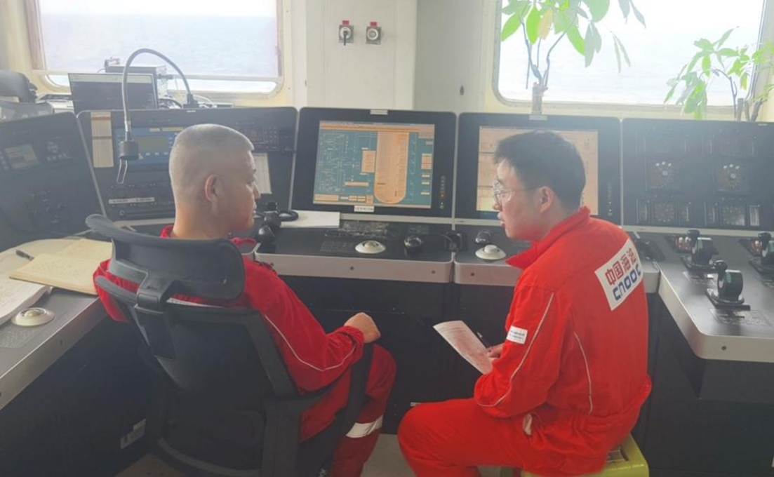 调研期间,钻井平台正处于我国深水海域某井的完井作业重要阶段。支部成员在工作人员的引导下,近距离观摩深水固井作业流程,重点学习了水泥浆密度控制、泵注排量优化、套管压力实时监测等内容,详细了解了深水条件下固井质量保障的关键措施,进而加深了对深水完井工程技术体系和风险控制方法的认识。