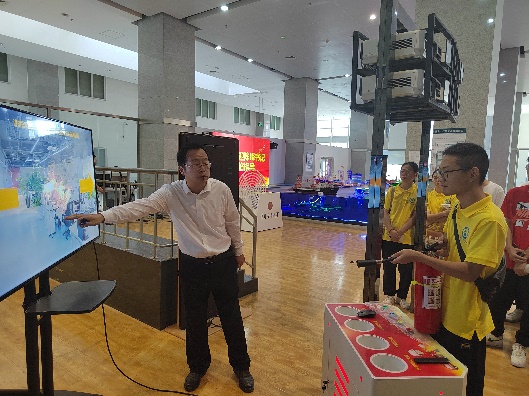 8月25日下午,安全与海洋工程学院2023级180余名新生在辅导员王志浩的组织下参观教学演示中心,实验中心主任朱益进行讲解介绍。