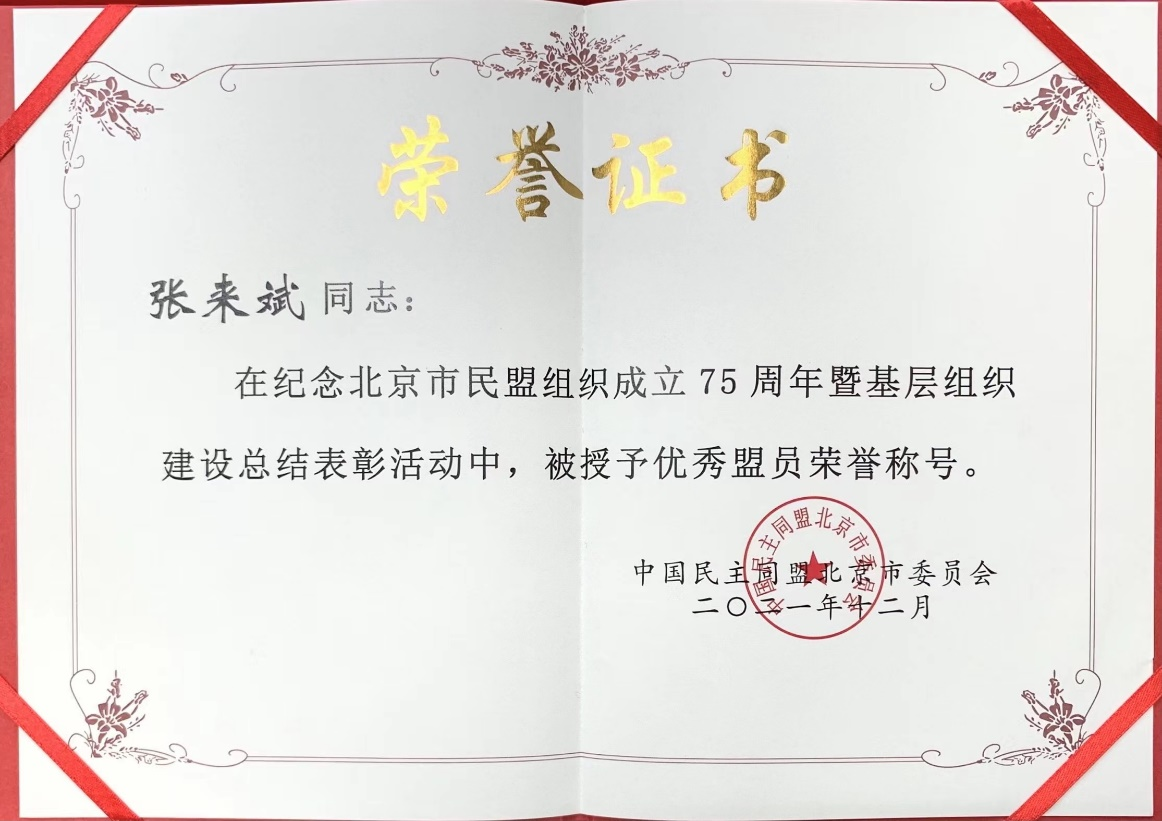 据悉,2021年12月30日,纪念北京市民盟组织成立75周年暨基层组织总结表彰大会在北京举行,安全学院教师、beat365在线唯一官网民盟盟员、中国工程院张来斌院士获评民盟北京市委优秀盟员。