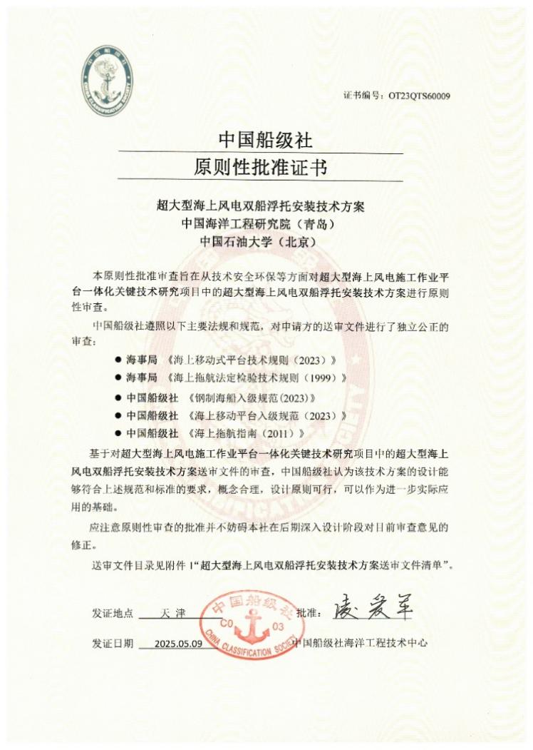 安全与海洋工程学院新成果通过中国船级社原则性批准