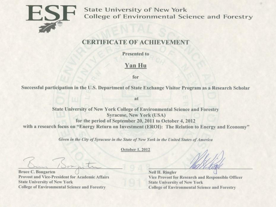 ÏÂͼΪºúÑàÔÚÃÀ¹úѧϰÆÚ¼ä»ñµÃµÄÖ¤Êé