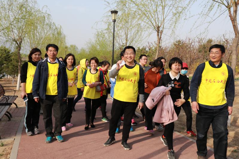 4月12日下午四点,校工会组织的第七届教职工“走向健康”长走活动在滨河森林公园举行。我院郭海涛院长、马春爱副院长、沈庆宁副院长以及二十余名教职工参加了此次活动。 春季的滨河公园,繁花盛开、姹紫嫣红;河水清澈,倒影清浅。大家一路上欢声笑语,沐浴着明媚的阳光,享受清新的空气。谈笑行走间,大家忘却了疲劳,最后都顺利完成7公里的既定路程,并在终点领取了纪念品。