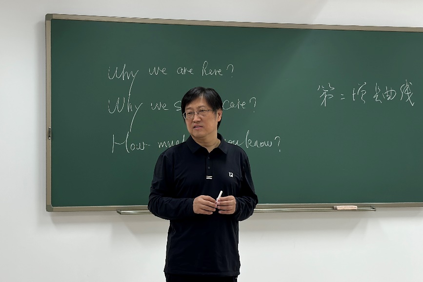 王震教授首先以个人经历为切入点,告诉同学们可以通过文科理科相结合的方式拓宽思维,也要在硕士阶段找到自己的兴趣点,明白自己为什么要学金融,多了解相关领域知识。之后对同学们提出三个问题“我们为什么在这里?我们应该关注什么?我们知道多少?”,强调思考的重要性,同时教导同学们要增加对现实世界的理解,也要注重培养个人的自律性。