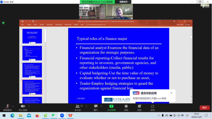 金融系邀请Michael L. Troilo教授为2022经济学新生做能源金融线上讲座