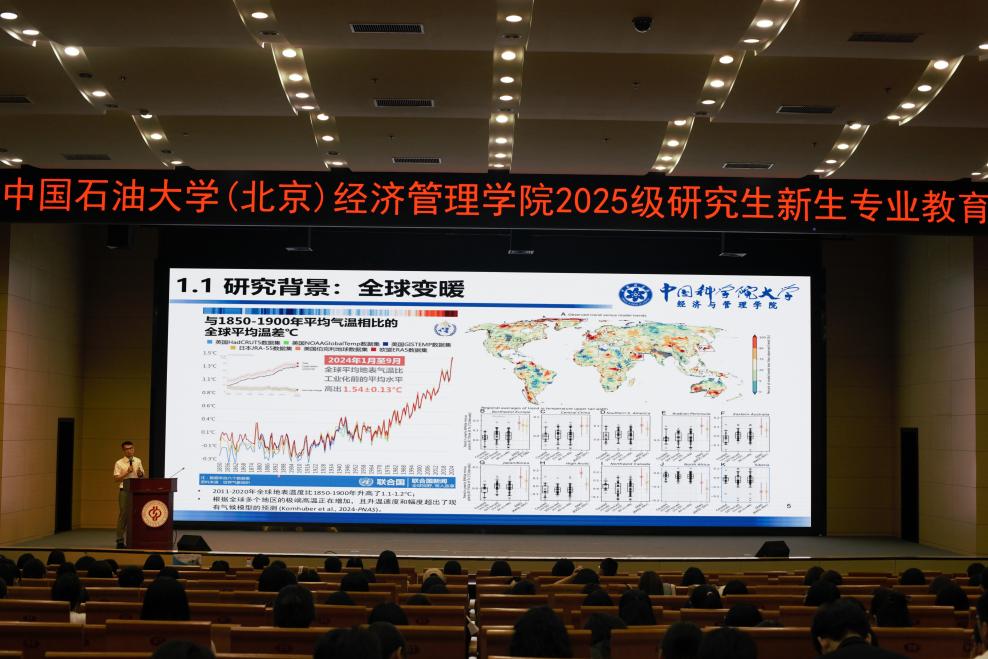 为提升师生科研素养,拓展学术视野,9月15日,经济管理学院邀请中国科学院大学经济与管理学院段宏波特聘教授,为学院师生了带来以《气候与能源经济建模及前沿应用》为题的讲座。讲座由经济管理学院副院长赵晓丽教授主持,多名专任教师以及全体2025级研究生参加了此次讲座。