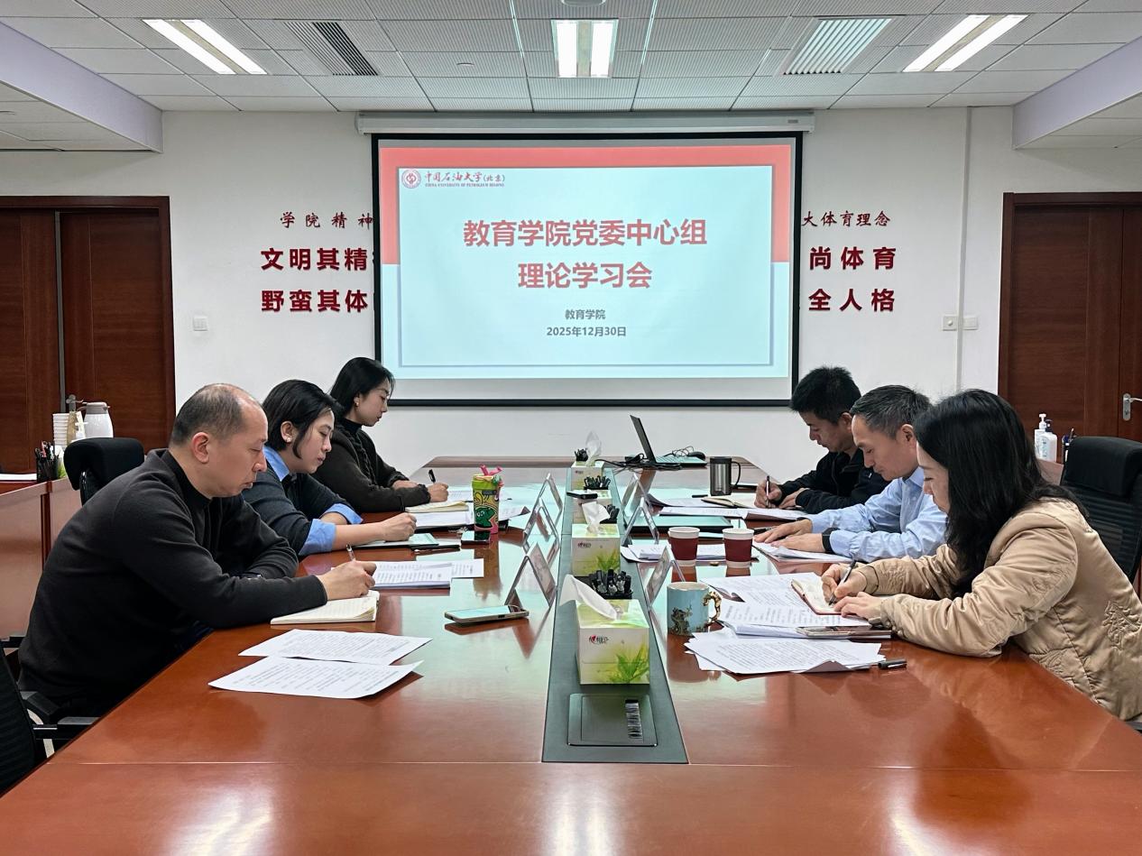 2025年12月30日上午,学院在主楼A922会议室召开学院党委中心组学习会。会议邀请了校领导张广清前来指导学习并点评,会议由王茹书记主持,学院党委委员参会。