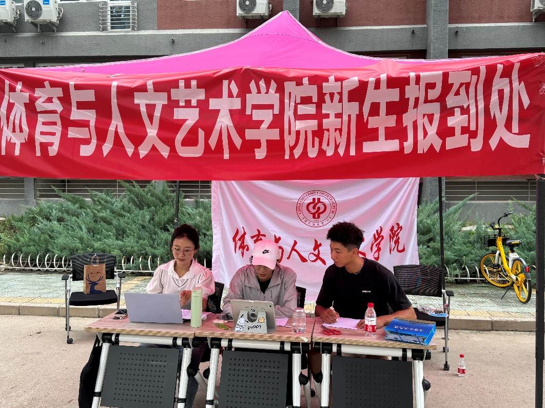 2024 年 8 月 24 日,骄阳似火,却挡不住体育与人文艺术学院迎新的热情。校园里彩旗飘扬,迎新的横幅格外醒目,处处洋溢着喜庆的氛围。