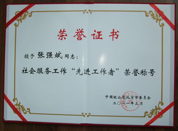 近日,致公党北京市委召开表彰大会,表彰在2007至2010年度致公党北京市委社会服务工作中取得显著成绩、做出突出贡献的集体和个人,并颁发了证书。14个先进支部、25个先进集体、172名先进工作者、23名突出贡献者获得表彰。